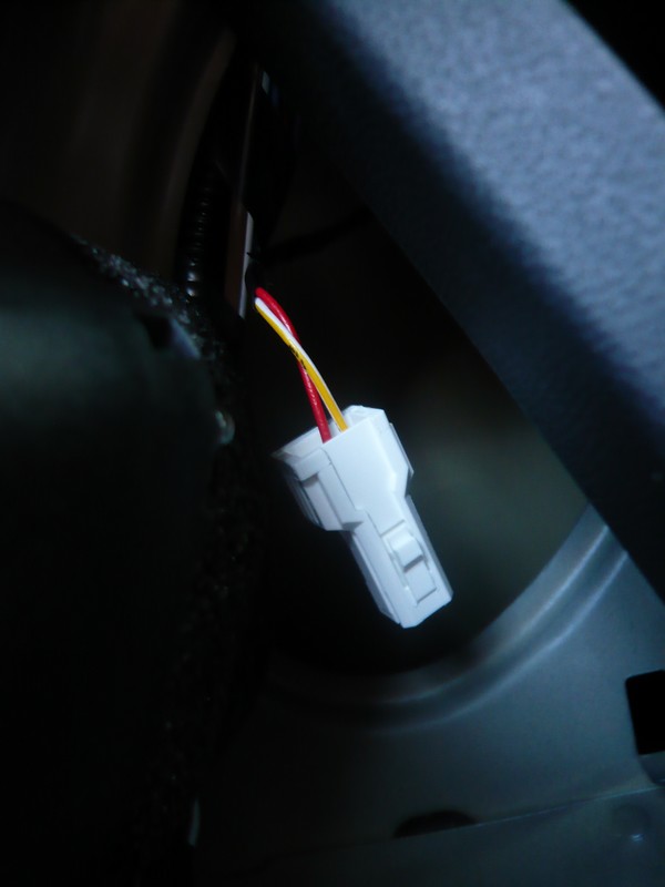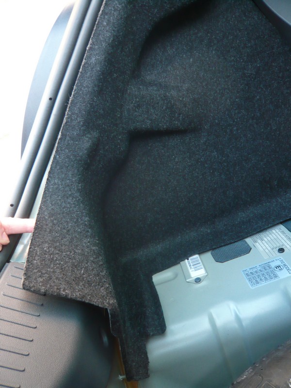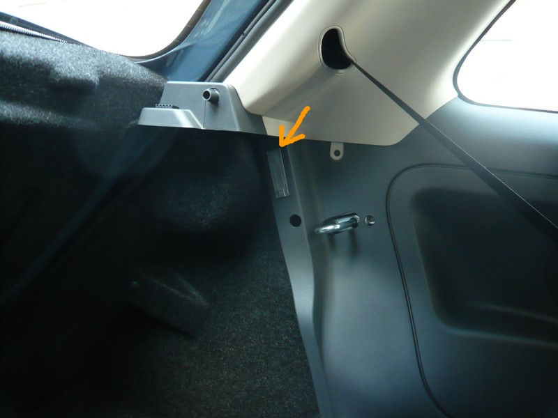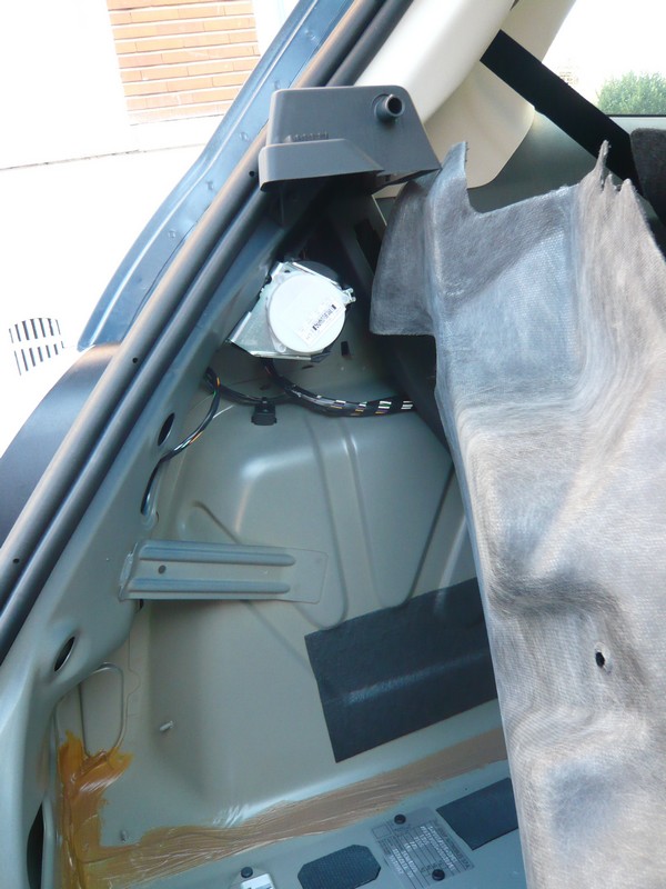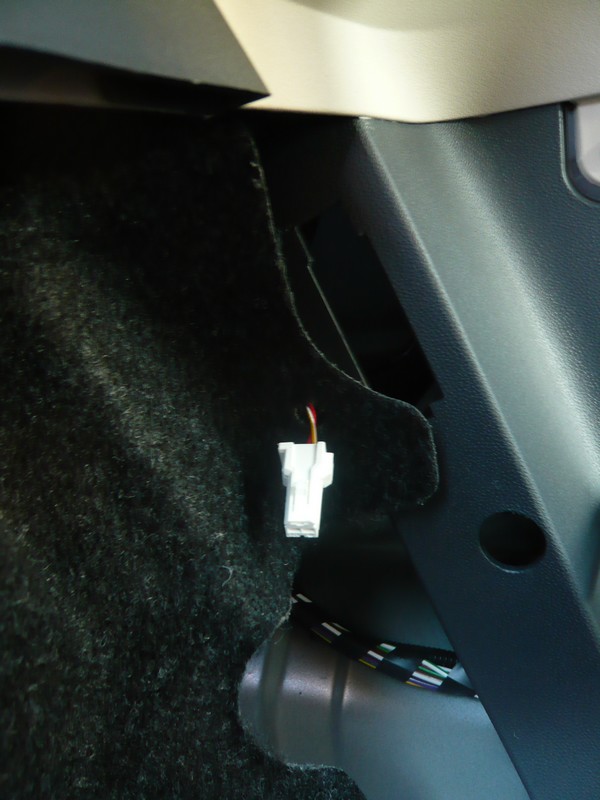 Il y a un petit trou dans la moquette qui semble être fait pour ça: j'y a donc passé le câblage. Pour les distraits, attention: ne passez pas le câble comme indiqué sur l'image précédente si vous préférez suivre cette méthode-ci, ou vous serez coincés.