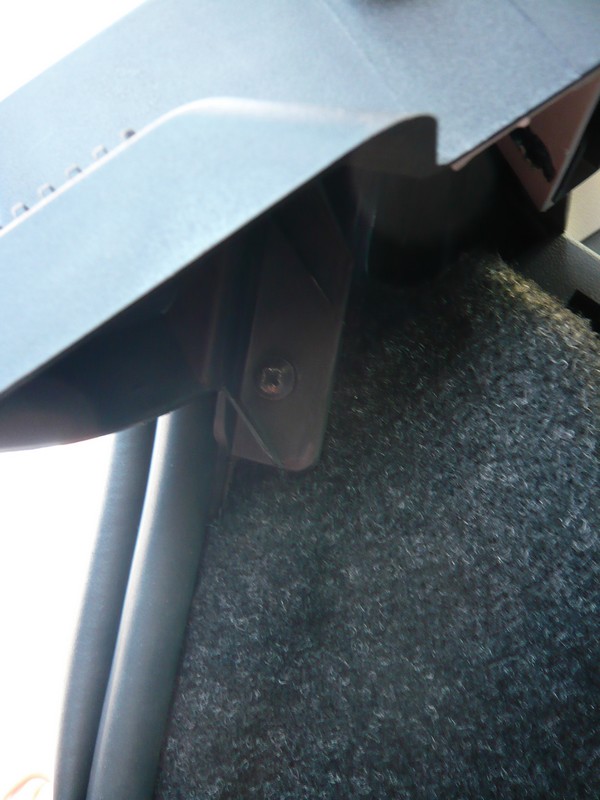 La partie de la moquette la plus délicate à remettre en place se trouve autour de l'enrouleur. Je n'y arrivais pas correctement, j'ai donc dévissé la vis que l'on voit sur la photo, et tout a glissé tout seul ensuite