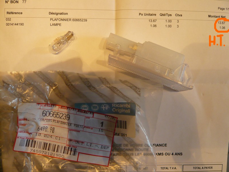 La lampe 5W coute 1,06€ et le support 12,91€ (tarif concessionaire TTC).