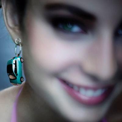 Véridique ou montage photos ? Voici la parure bijoux Fiat 500 composée de boucles d'oreilles et d'un collier. Les femmes vont être contentes ou pas
