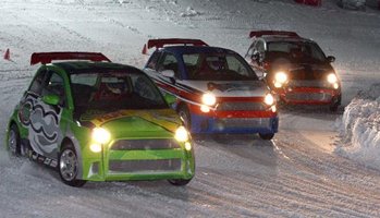 une course de Fiat 500 entre pilotes de F1 (Kimi Raikkonen, Felipe Massa, Marc Gene et Luca Badoer) sur le petit lac gelé de Madonna di Campiglio.