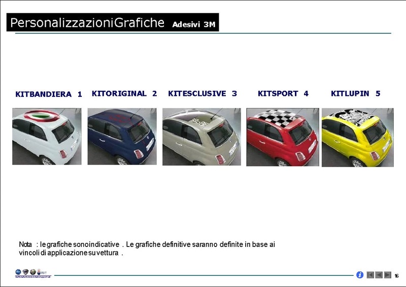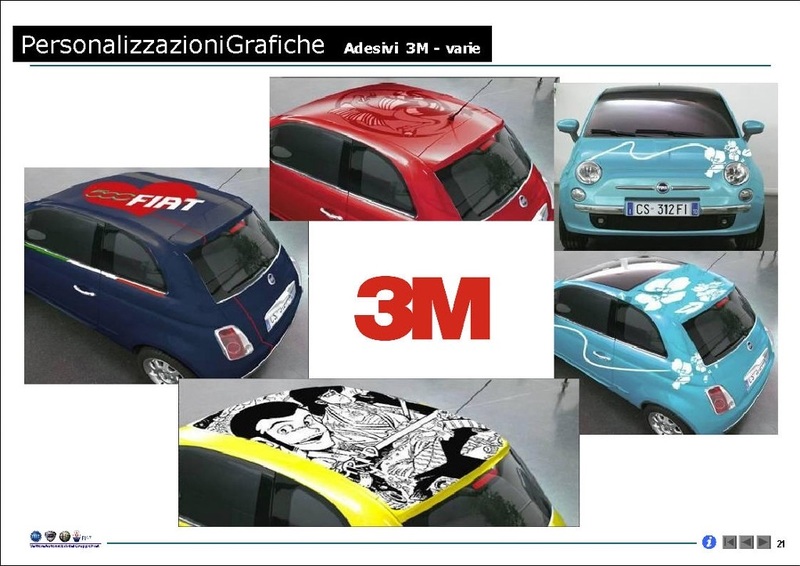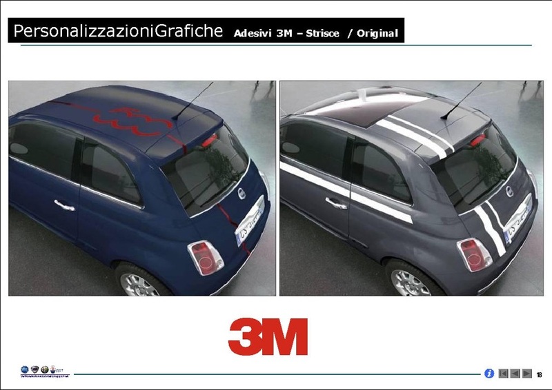 Néanmoins il éxistera certainement des spécialiste de l'autocollant automobile qui proposerons d'autres déco que celles prévu par Fiat et son fournisseur officiel 3M... à suivre donc  |