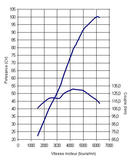 Puissance max kW (ch) : 73,5 (100) à 6000 tr/mn