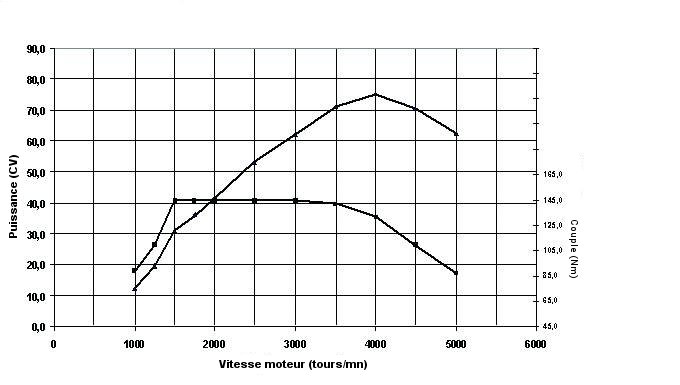 Puissance max kW (ch) : 55 (75) à 4000 tr/mn