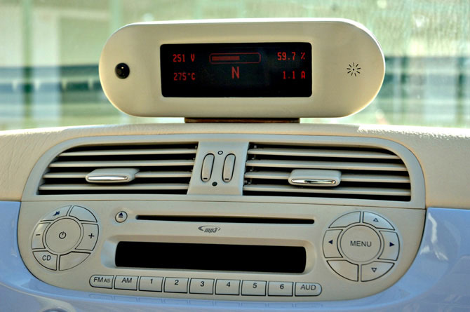 Doté d'un moteur électrique fourni par la société suisse MES-DEA, cette 500 peut rouler jusqu'à 130 km/h et son autonomie est de 140 km environ. La recharge de la batterie est effectuée en seulement quatre heures. |