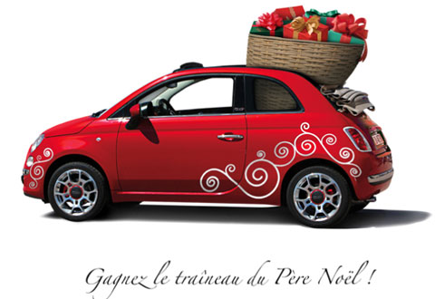Du 12 au 20 décembre 2009, la famille du Père Noel circulera à Paris, Neuilly, Levallois et Boulogne-Billancourt à bord de trois Fiat 500C pour distribuer des chocolats aux enfants et des codes à leurs parents leur permettant de gagner un des cadeaux mis en jeu :