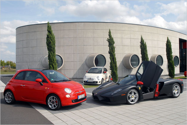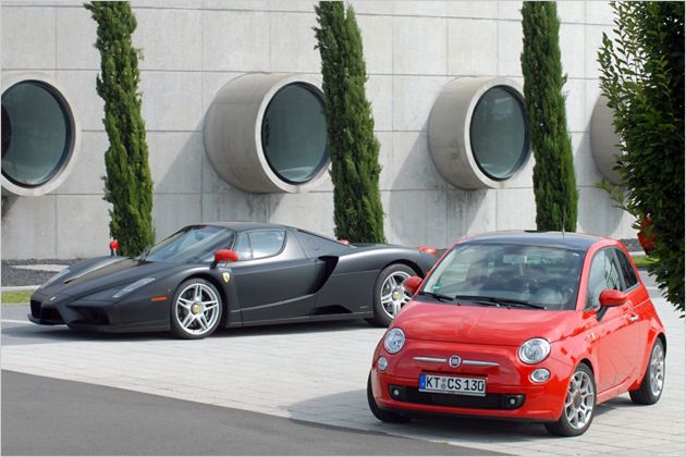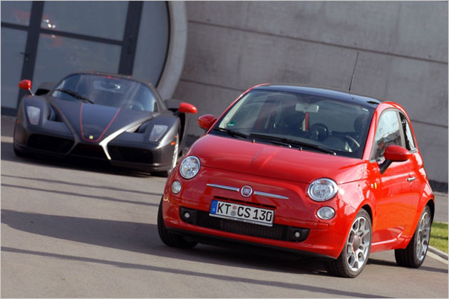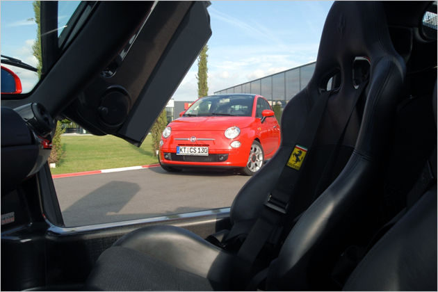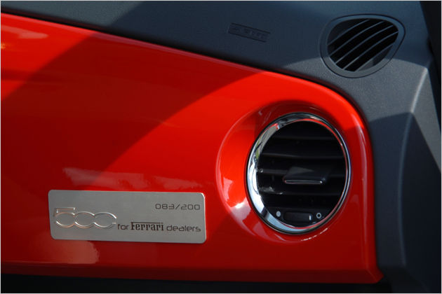 Fiat 500 Ferrari Limited Edition produite à 200 exemplaires sur la base du moteur 1.4 100 ch ; elle est munie de jantes 16" 195/45.