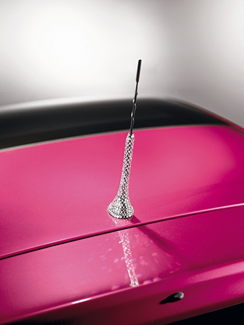 - Cristaux scintillant dans l'habitacle, sur les jantes, sur les moulures extérieures des fenêtres et sur l'antenne