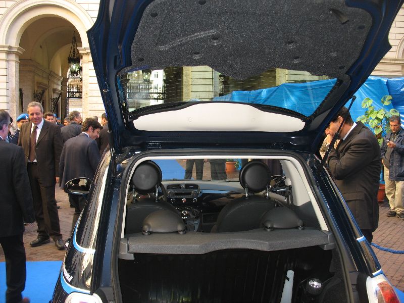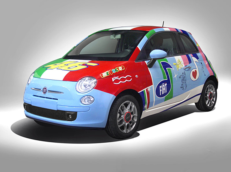 En tout cas après Alessandro Del Piero, c'est maintenant au tour de Federica Pellegrini (nageuse italienne ayant remporté la médaille d'argent en 200 m nage libre aux J.O. d'Athènes) de se faire remettre les clés par Lorenzo Sistino, administrateur délégué de Fiat Automobiles, au Mirafiori Motor Village ; la Fiat 500 est une version Lounge 1.3 Multijet 75 ch couleur Cha Cha Cha Azure avec les stickers latéraux "Drapeau Italien".
