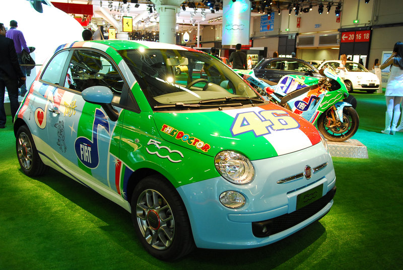 | oborandy a écrit: | Une Fiat 500 spéciale Valentino Rossi ? Sachez qu'elle est basée sur la version Sport 1.4 100 ch, qu'elle dispose de la climatisation automatique, de feux antibrouillard et de jantes de 15 pouces. C'est une réalisation du centre de style de Fiat.