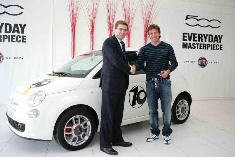 Nous avons découvert la Fiat 500 de fonction de Felipe et Kimi de la Scuderia Ferrari , voici celle d'une autre personnalité : Alessandro Del Piero, avec le numéro 10 exclusif (pour la 10ème sortie des chaines de montage et un 10 comme le numéro du capitaine de la Juventus de Turin). La remise des clés a été effectuée par Lorenzo Sistino, administrateur délégué de Fiat Automobiles, au Mirafiori Motor Village où se situe le show-room du groupe Fiat Automobiles.