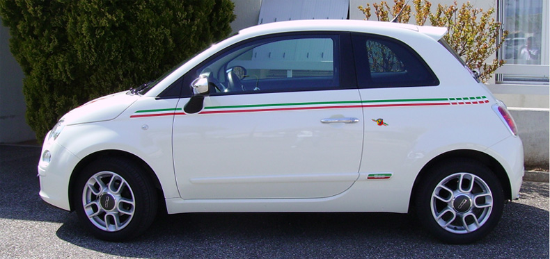Pour ce faire une idée de ce qui peut donner, voilu un chtit montage que j'ai fais sur ma 500, d'ailleur je vais recevoir prochainement la paire de ce merveilleux stikers abarth ciao ciao