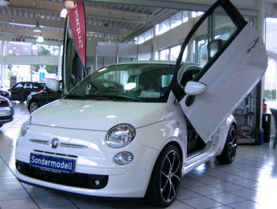 | perso je trouve ca affreux en plus claquer 800 euros ca va pas la tete de plus c est pas pratique dutout parce que tu dois dabord ouvrir normalement la porte pour former un angle de 15 degre un truc du genre et apres tu fais la monter la porte j ai un ami qui a eu ca sur une M3 e92 il est arrive un jour a sa voiture tres enerve et il a oublie qu il avait des portes lsd et il l a casse apres il les a vire et sur une 500 c est redicule |