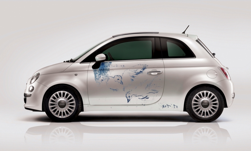 A l'occasion du lancement de la nouvelle Fiat 500 au Royaume-Uni, Fiat a demandé à l'artiste Tracey Emin de réaliser quatre oeuvres uniques de la nouvelle Fiat 500. Voici l'une d'entre elles.