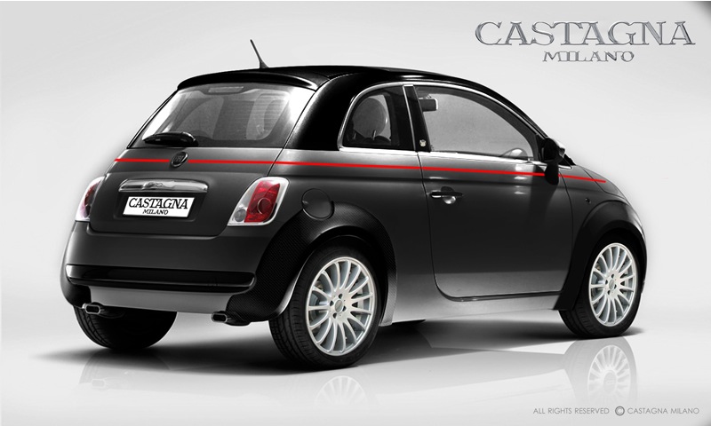 500 by Castagna Milano : peinture bicolore avec liseré rouge, passages de roues en carbone, jantes 17", sorties d’échappement chromées… une 500 de luxe en somme |