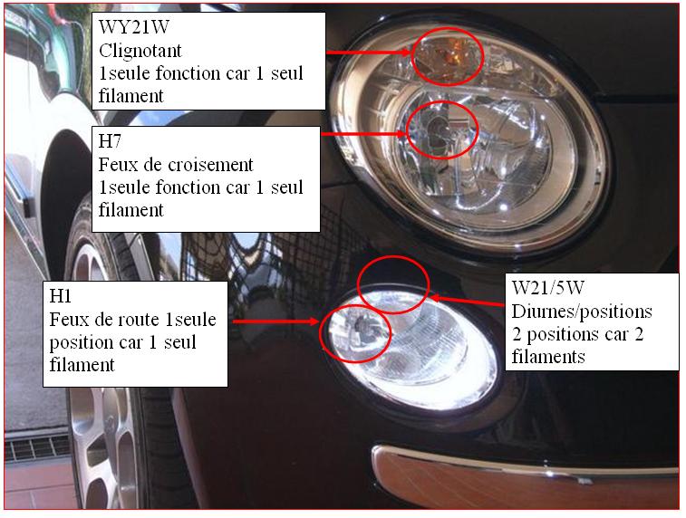 La 500 a des feux de croisement, c'est effectivement du H7. (bloc optique entre capot et PC)
