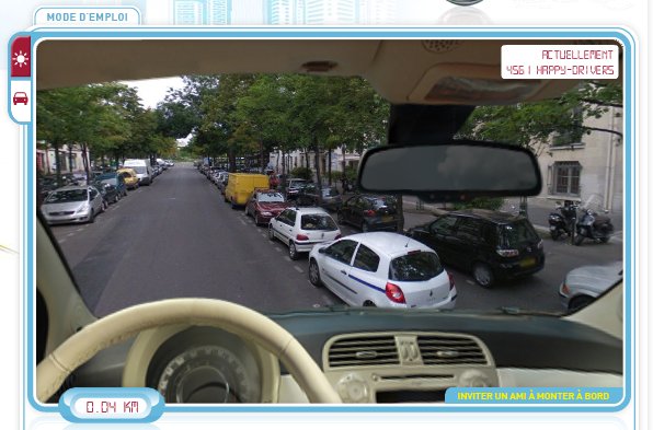 Je n'avais pas vu la fois où j'ai visité le site dédié à la Fiat 500C mais grâce à Google Street View, certains auront la possibilité de devenir un Happy-Driver en roulant à bord de la Fiat 500C dans une rue chez lui !