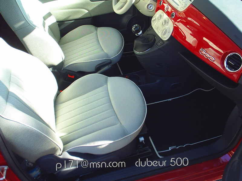 Alors dans ce cas va dans les photos du forum et regarde les différents sièges (j suis encore incapable de mettre une photo dans ce forum...) ca peut te faire changer d'avis !![/img] _________________ Fiat 500 1.2 sport S&S Electroclash Grey, intérieur marron, JA 16" Multispoke, baguettes latérales. |