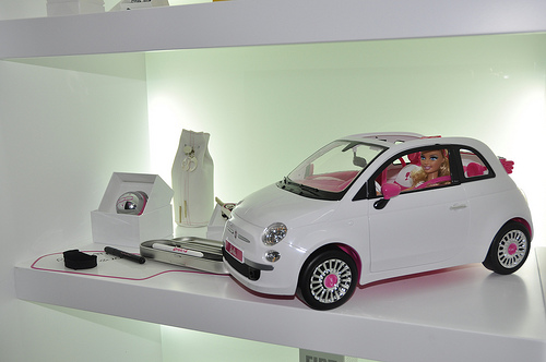Barbie roule en 500c, mais qu'est-ce qu'elle a l'air grande à côté!
