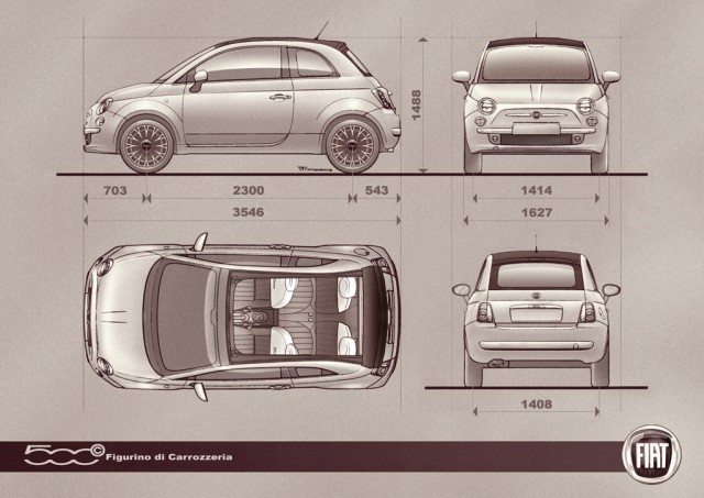 | Dimensions de la Nouvelle Fiat 500/Fiat 500C/500 Abarth |