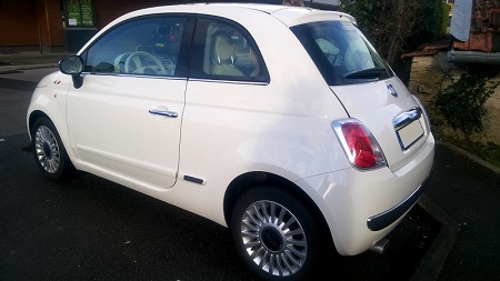 Cause reprise FIAT 500 Lounge 1.2l, mais rouge Pasodoble.